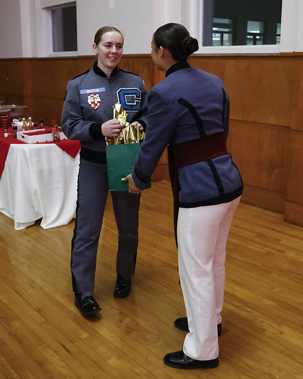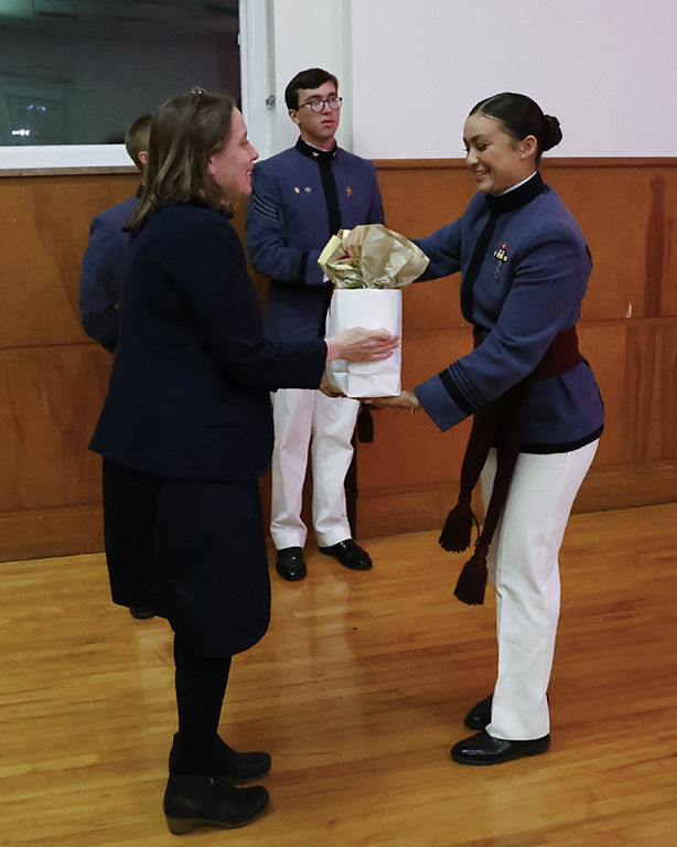 Editor-In Chief, Noah Miller, ’26, thanks the audience for their attendance and support.
