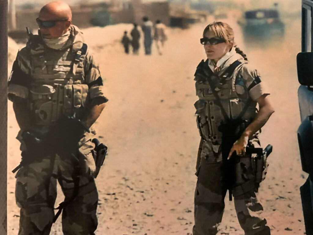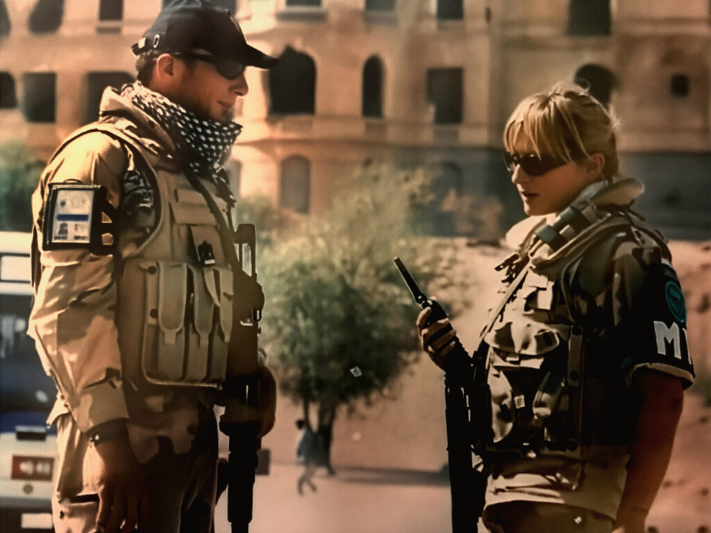 She stood on patrol with her unit outside Camp Warehouse, one hand resting on a NATO-issued rifle strapped across her body, the other near the pistol at her side. “It was hot and dry,” she said, “dust scraping our eyes and throats, and the smells were awful.”