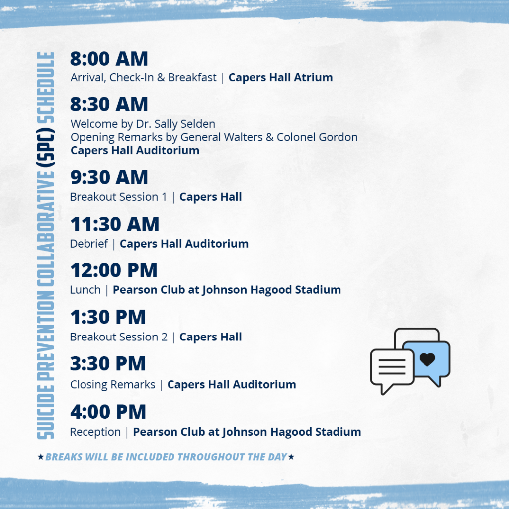 The Office of the Commandant, the School of Humanities & Social Sciences, and the Department of Psychology are proud to host the Suicide Prevention Collaborative.