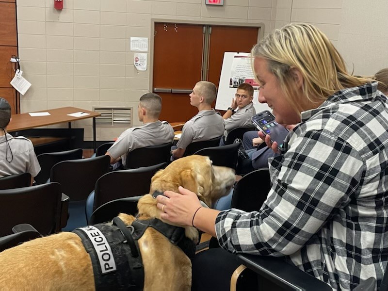 Lt. Roy, Detective Garrison, and Detective Magrane Class of ’16 was explaining to the Cadets the dangers of Fentanyl Sgt. Moore was giving some love to K-9 Buster